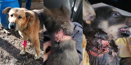Auf dem mitteleren und rechten Foto seht ihr Rocky. Ein betrunkener Idiot hat probiert ihm den Kopf anzuschneiden. Er hat aber überlebt und ist hier schon in unserer Obhut auf dem Weg zum Tierarzt. …ohne Worte …